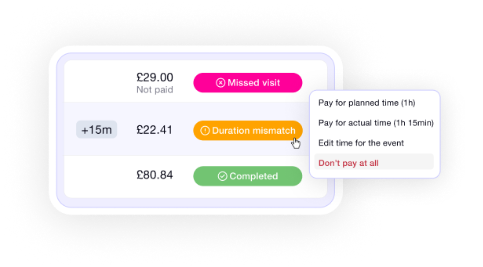 Pay as planned, actual, edit or don’t pay for the visit – managers are always in control of operating costs here.