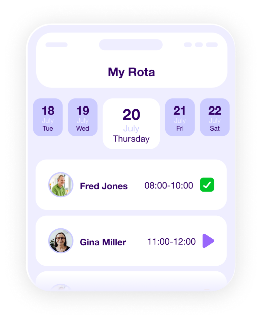 Rota managers will be able to mark a visit as open, then review team members who are available and approve the match that’s best suited for the needs of service users.