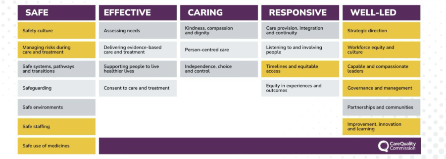 The Quality Statements were introduced as part of the Single Assessment Framework, and the real benefit they brought was breaking the Key Questions - Safe, Effective, Caring, Responsive and Well-led - down into clearer areas of assessment.